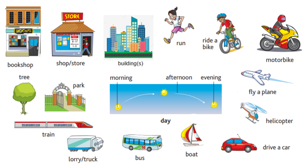 13. motorbike /ˈməʊtəbaɪk/ (n): motorbike
